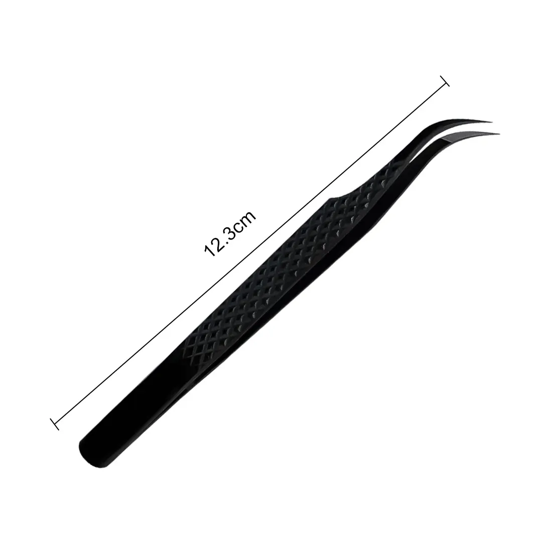 Designed with an ergonomic handle, these tweezers reduce hand fatigue and provide comfortable handling during long beauty sessions. The smooth finish and anti-slip grip ensure stability while working with individual or strip lashes. Ideal for eyelash extensions, volume fans, and detailed lash work.